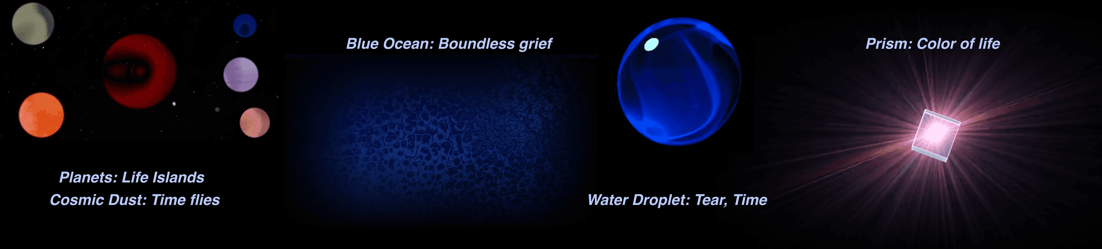 Sound: Rising Tide, Blue Ocean, Water dripping, Ticking of time, Light bursting, Childhood laughter
