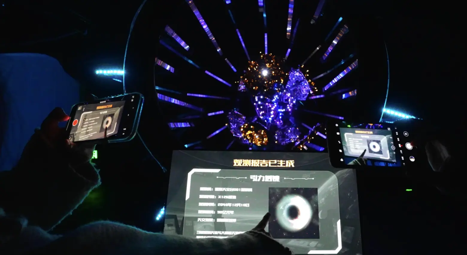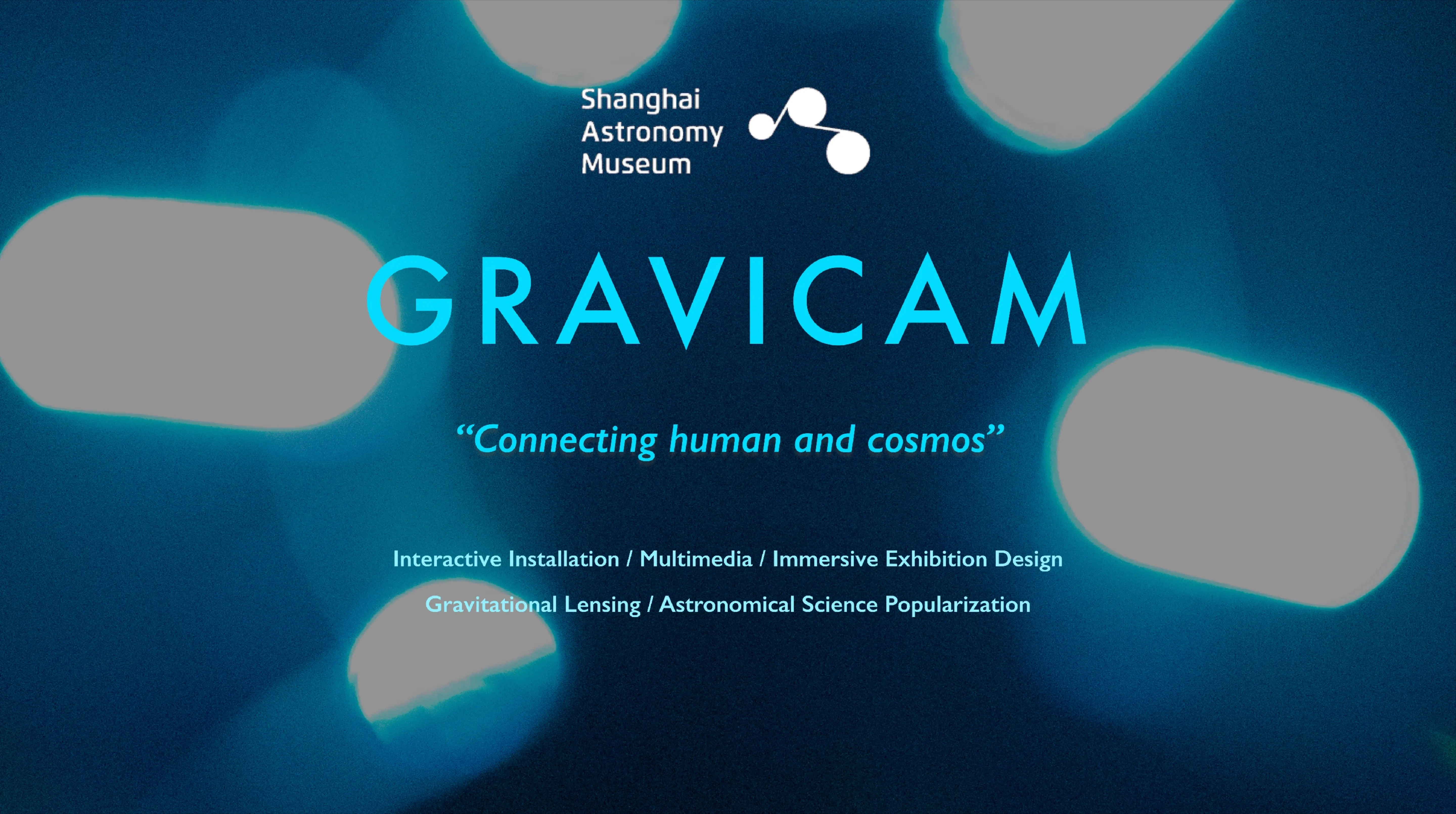 Gravicam is an immersive, multiplayer installation created for the Shanghai Astronomy Museum, demystifying gravitational lensing through cooperative gameplay. One participant embodies a celestial body while the other becomes an observer. By physically manipulating a lens, players work together to capture a "celestial portrait," vitnessing firsthand how gravity bends light and warps imagery. This experience is powered by a robust technical framework where a bidirectional communication system between Unity, TouchDesigner, and Arduino translates real-world actions into dynamic visual effects, making advanced astrophysics accessible and engaging for all visitors.