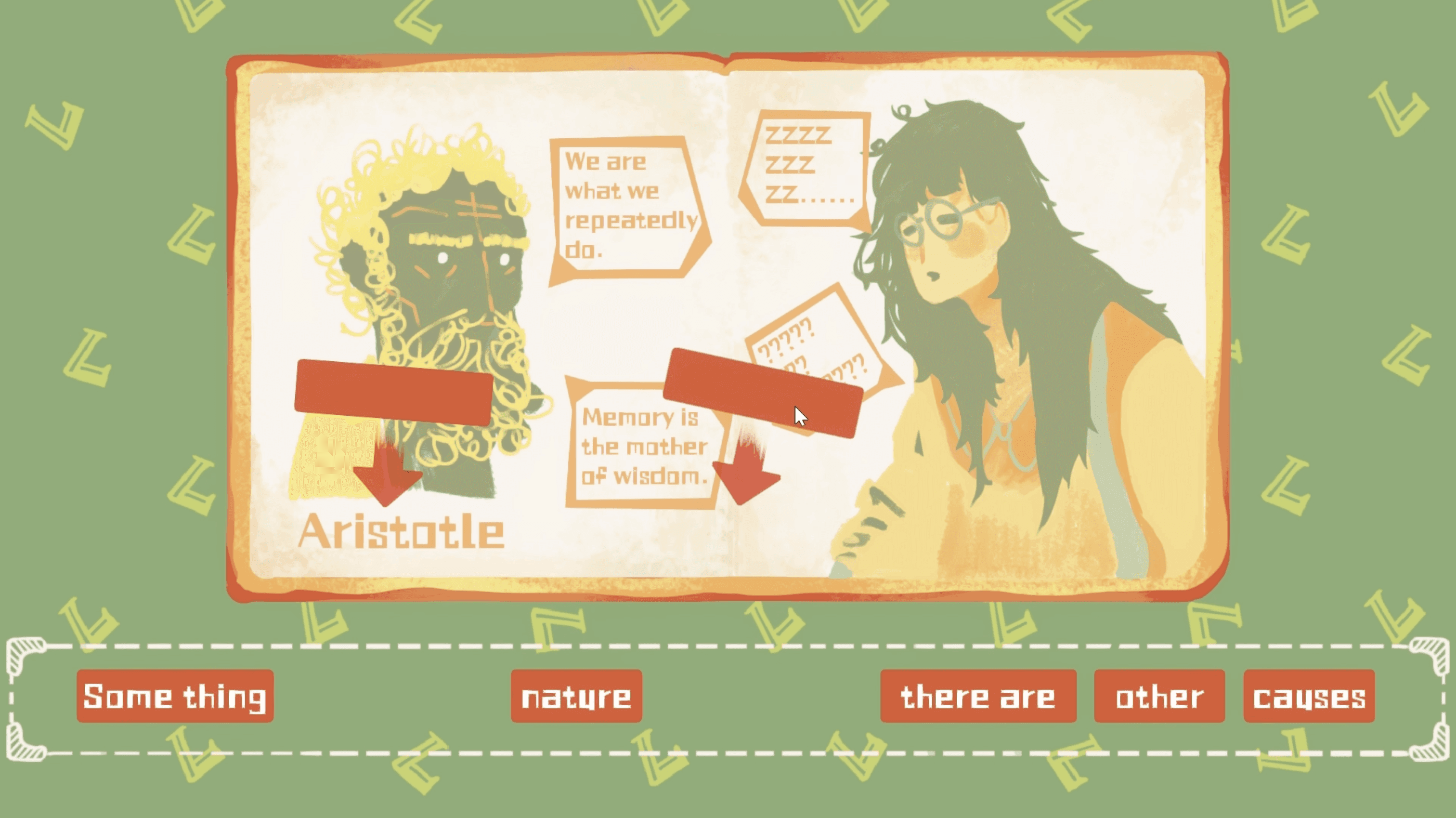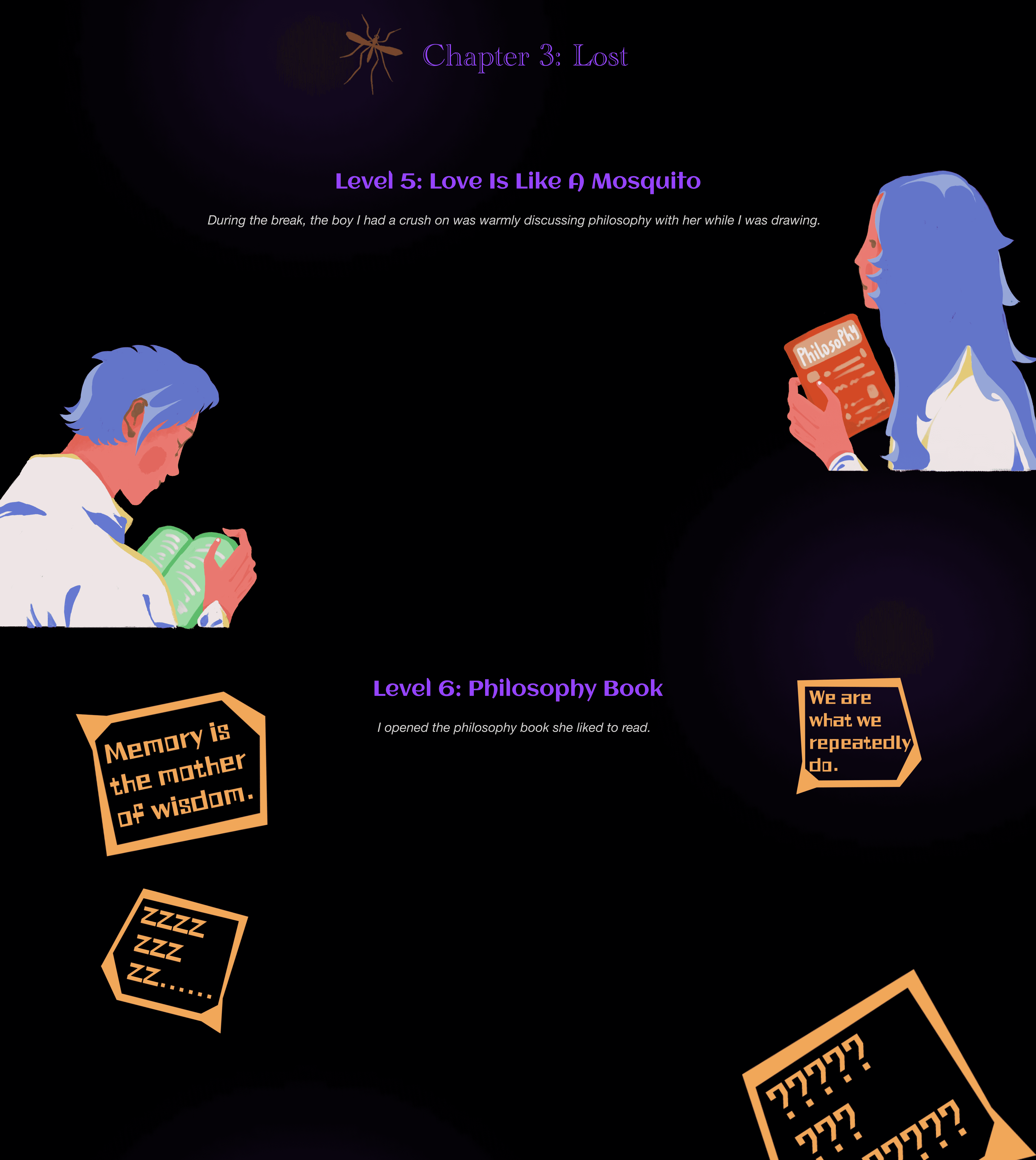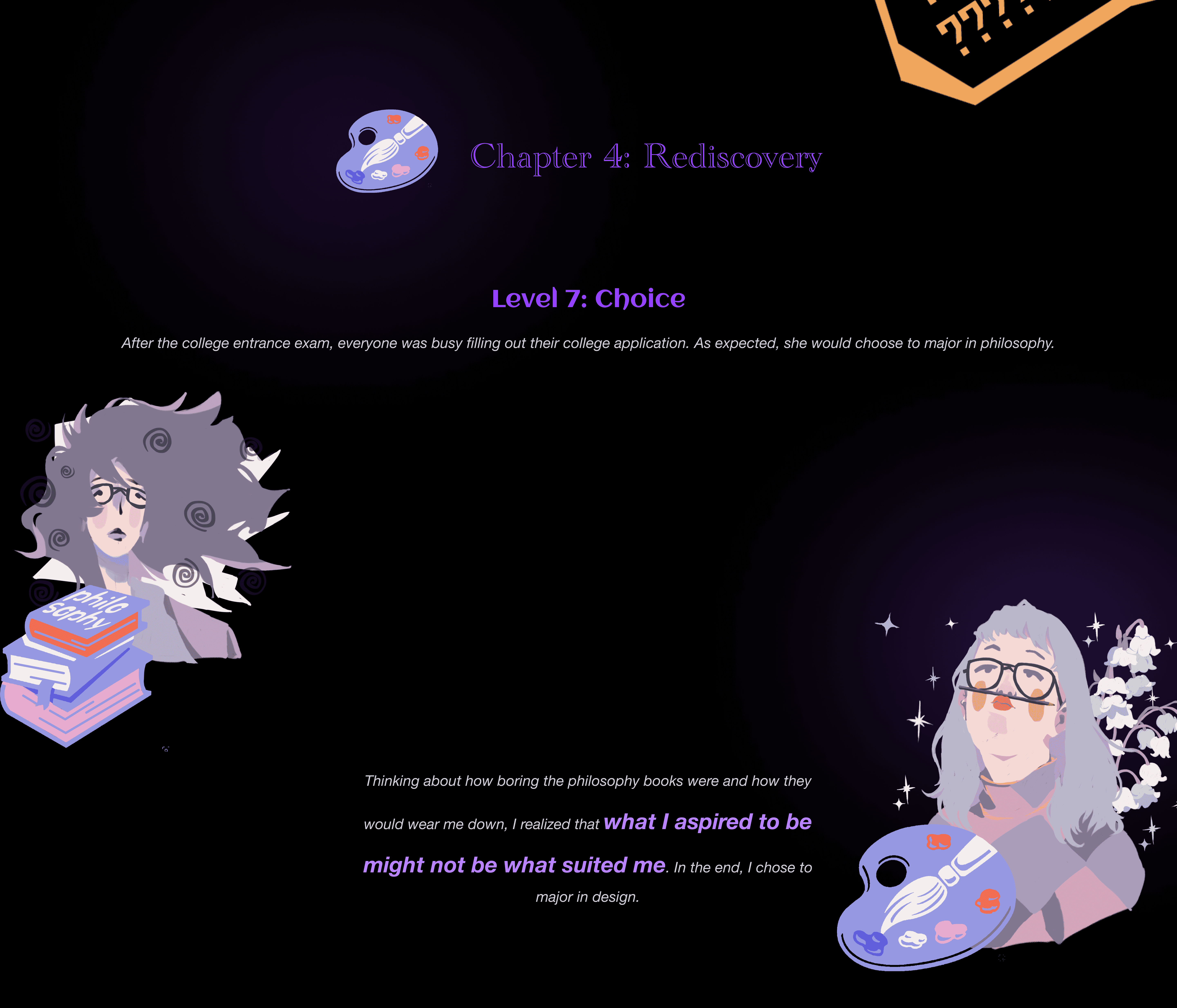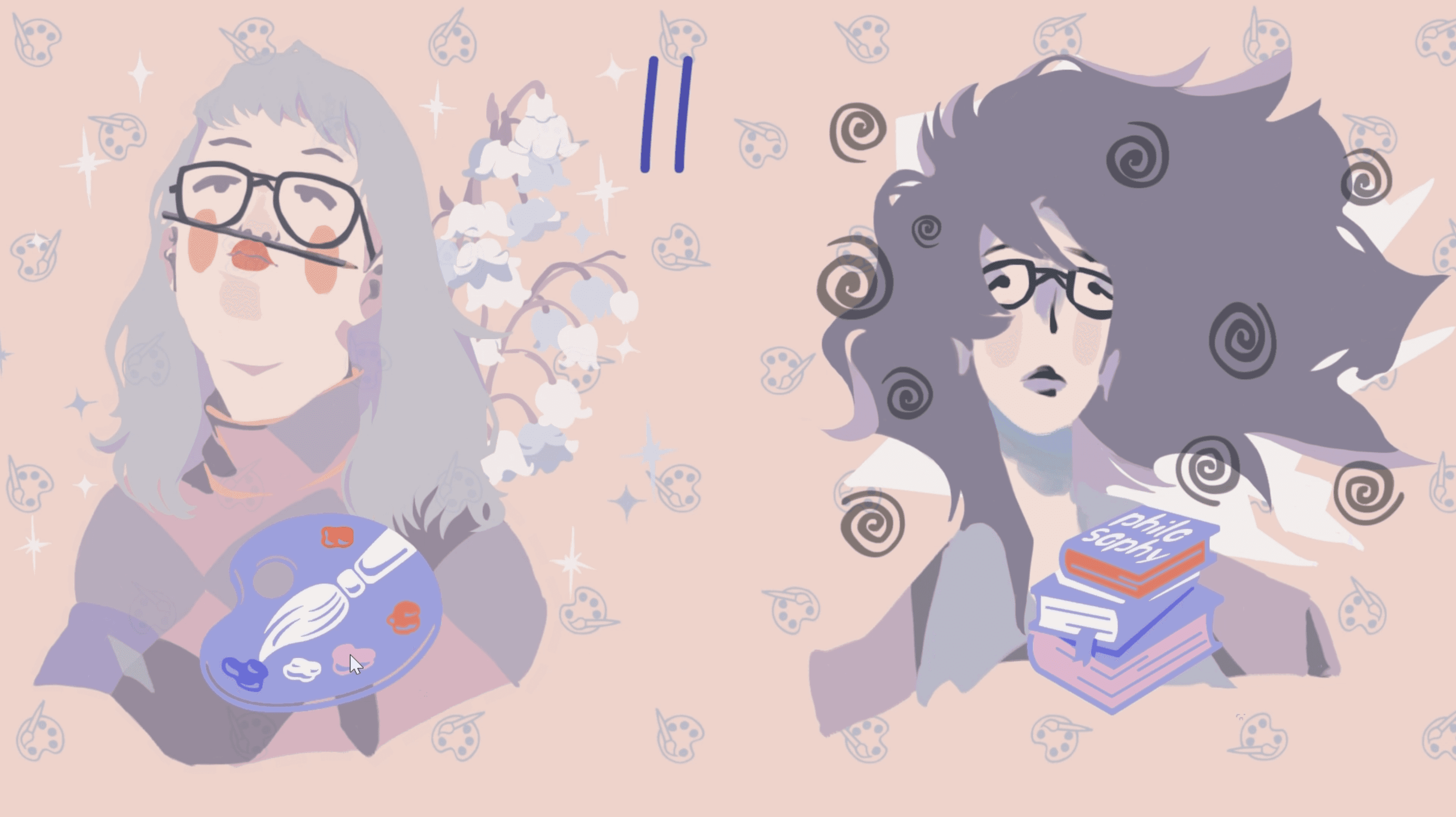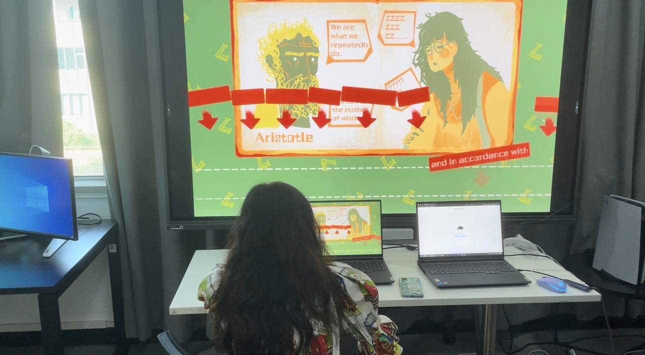 Rose & Palette is an interactive narrative game inspired by my high school experience. It tells the story of an ordinary girl who becomes deeply fascinated by a very cool new classmate. As she increasingly mimics the other girl's behavior and style, she gradually loses her self-esteem and identity. The game uses thoughtful interactive mechanics to immerse players in this emotional journey of admiration, imitation, and eventual self-rediscovery. It aims to offer a reflective and healing experience for anyone who has ever felt overshadowed while searching for their own voice.
