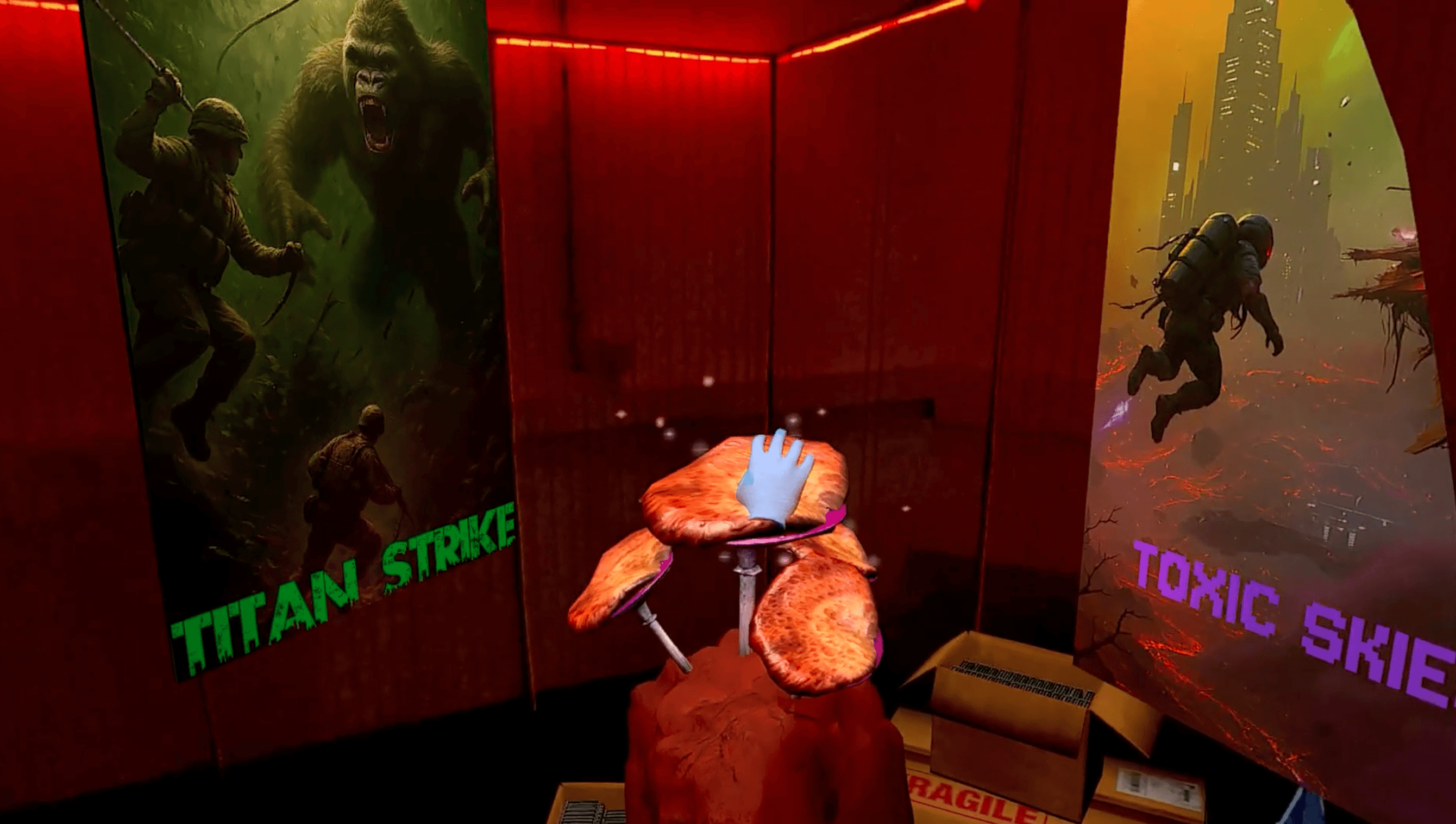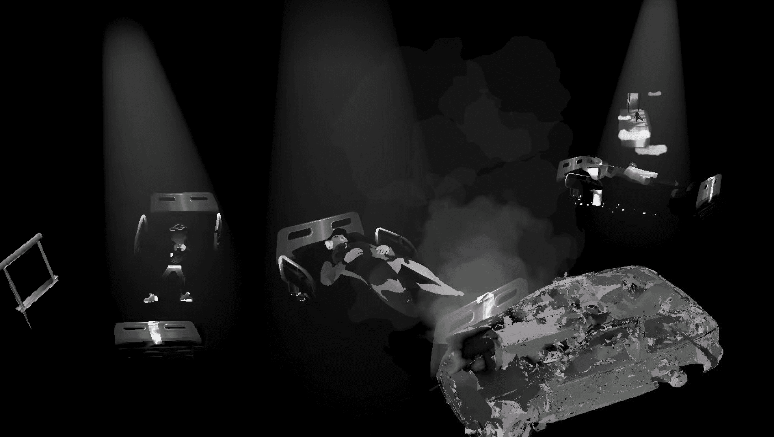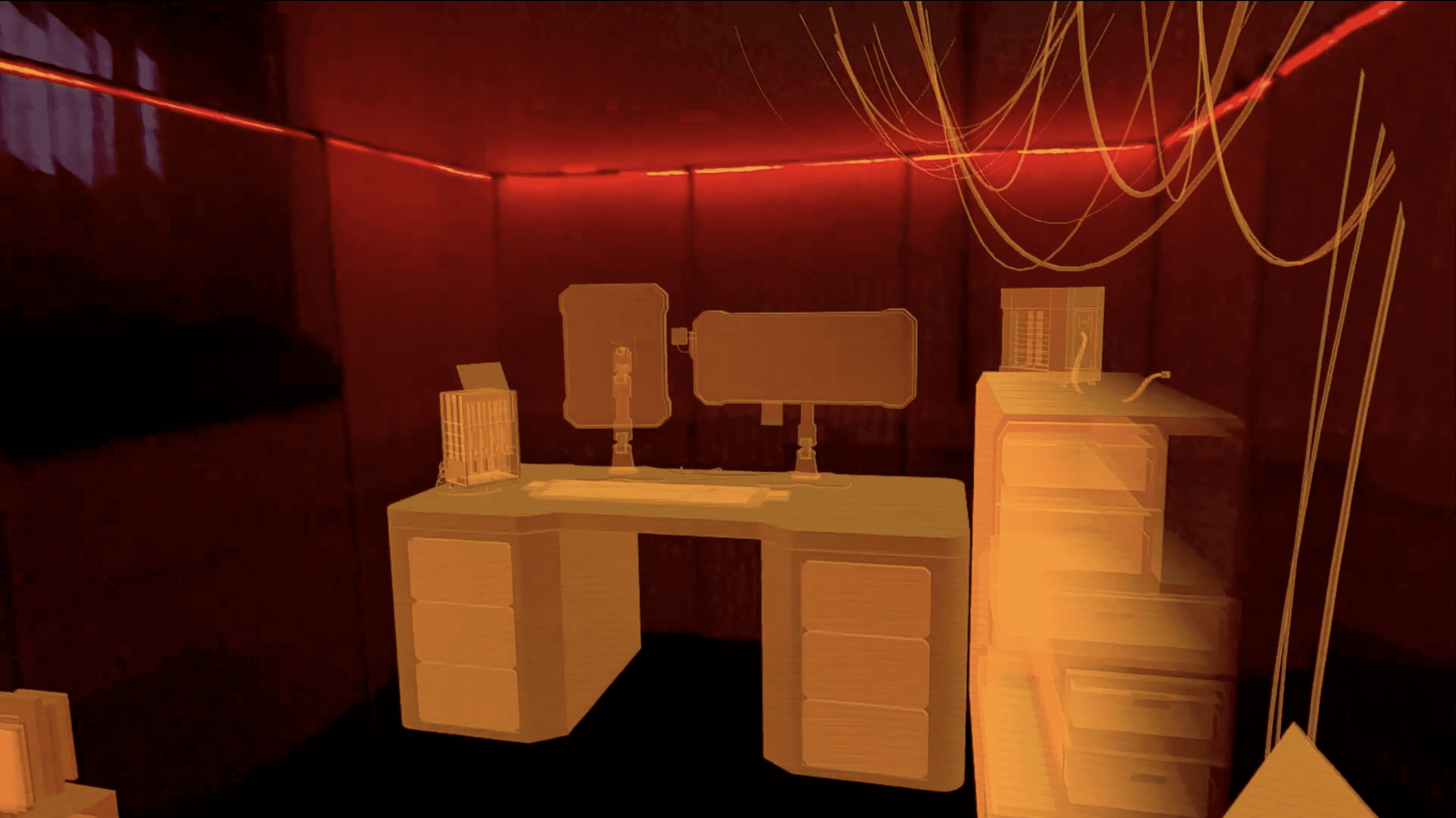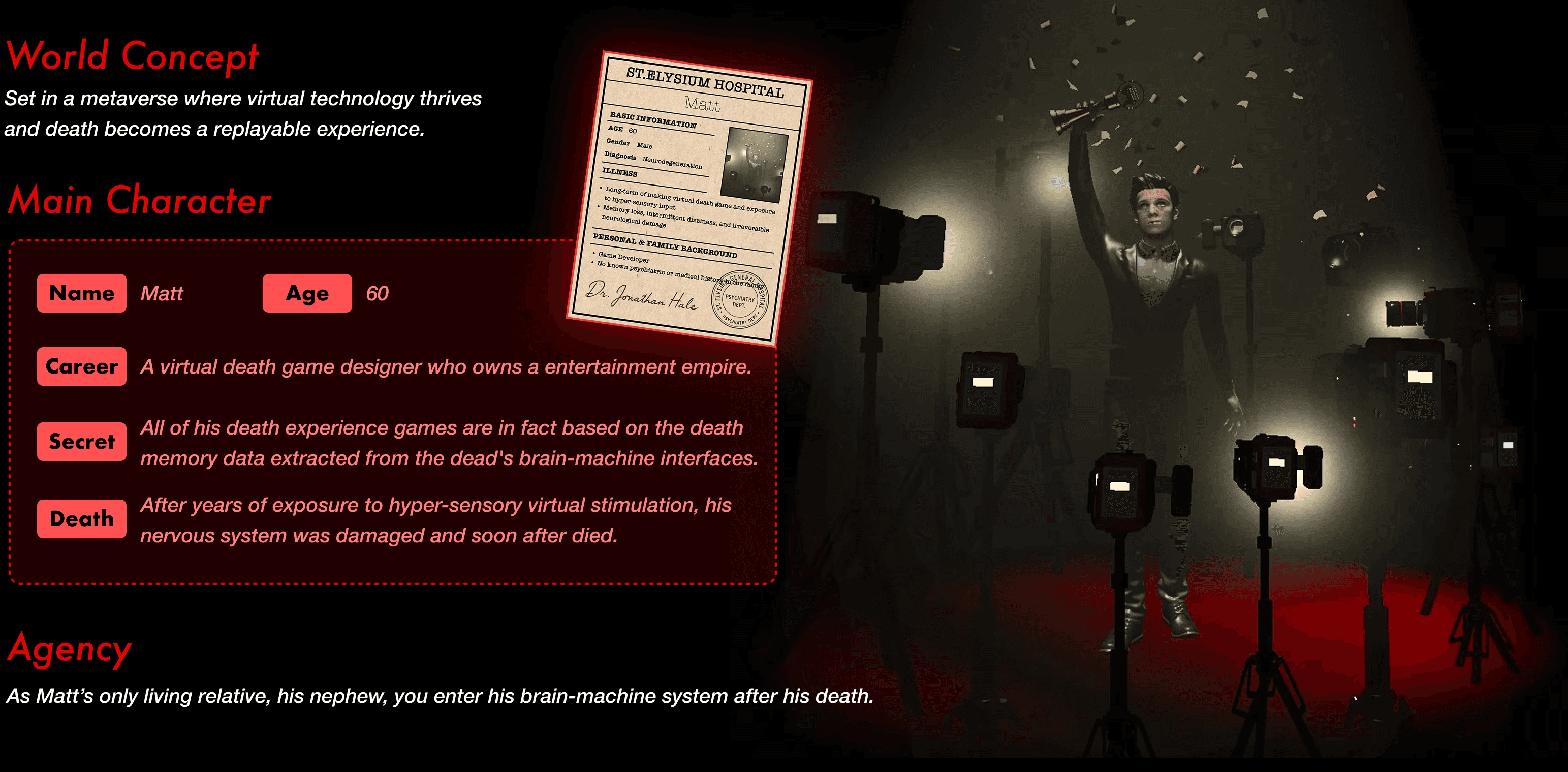 We constructed a physical space to symbolize Matt’s brain-machine space, using the red light as a metaphor for “death”.