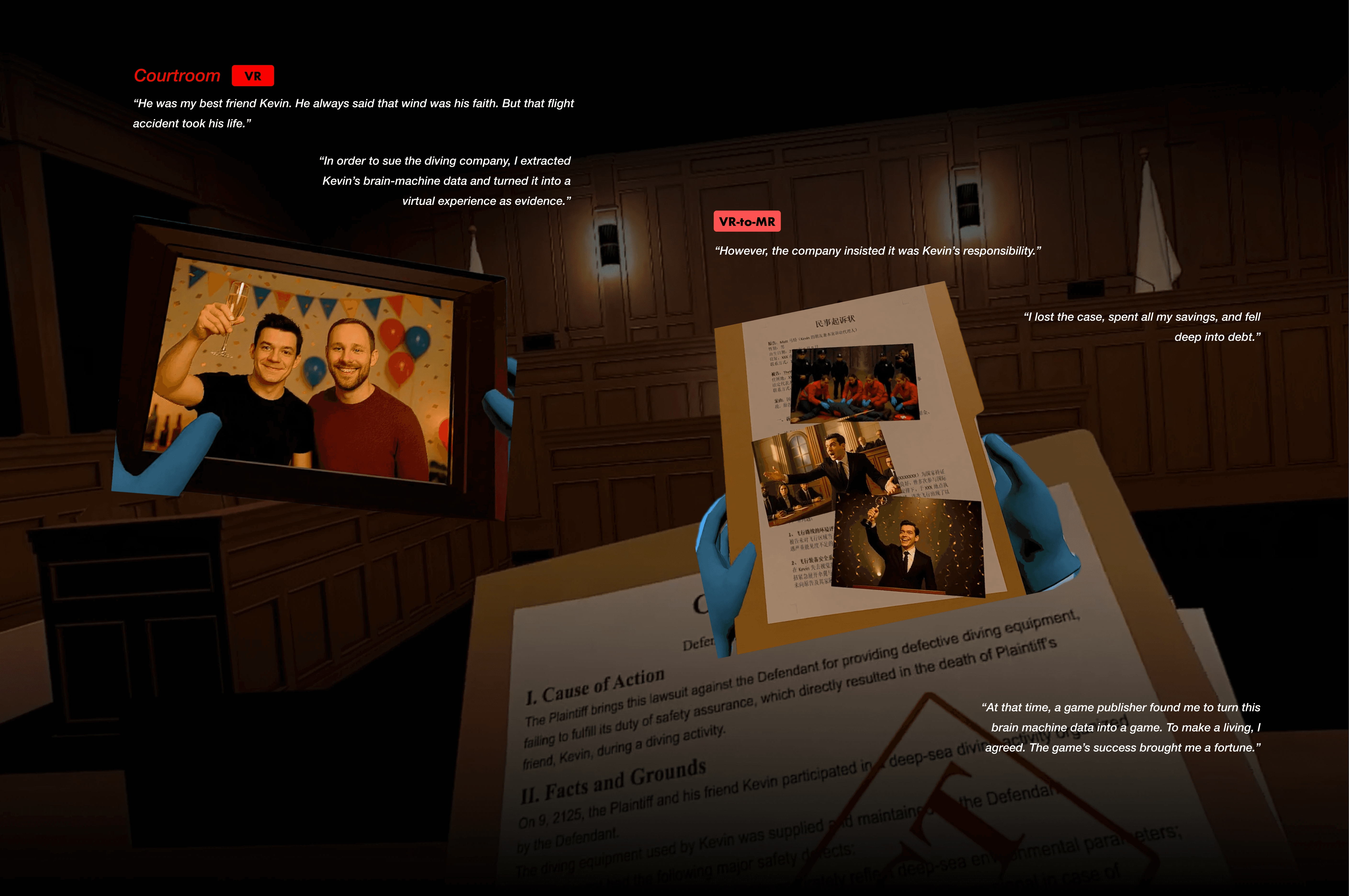The film adopts a dual narrative structure of MR X VR, where the player gradually explores the storyline through physical space and virtual world.